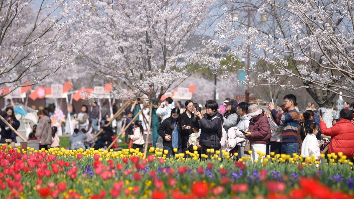 樱花烂漫,不仅醉了游人,更带动了周边经济的火热升温。今年樱花季,当地创新推出“花漾赶春集”,在樱花里商业街、文化广场设置百余个特色摊位,将赏花与美食、文创、非遗体验深度融合。