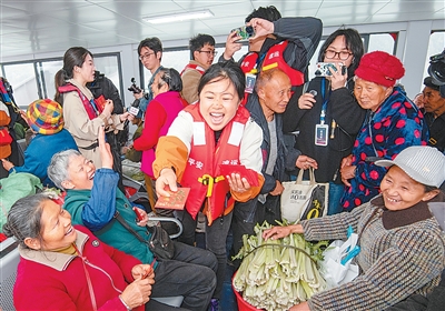 “现在真好,不仅可以坐新船,政府还出钱修了新码头,有了水泥路,有了候船亭,等船也不怕太阳晒、雨水淋了。”新船上,乘客罗天树接过志愿者分发的免费早餐——包子、鸡蛋和绿豆粥,一边吃一边笑着说。